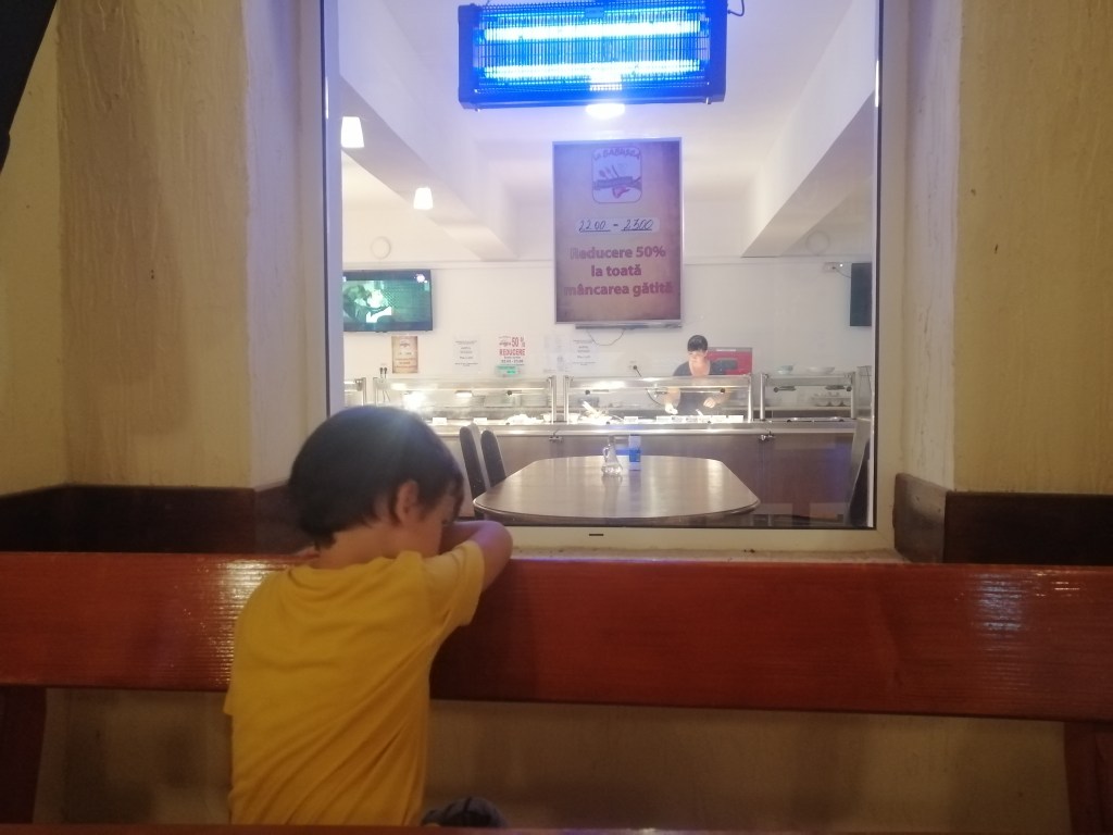 Altă terasă, cu tineri care par sub 18 ani toți care merg zeci de mii de pași pe zi și traversează în câteva secunde o terasă mereu plină, zeci de mese, zeci de comenzi. Un restaurant duduind și o echipă de adolescenți care transpiră fugind printre mese, cumva mereu perfect coordonați, dându-și indicații, strigând, acoperindu-se ( ”vine cineva să ajute la bucătărie că sunt prea multe vase de spălat?” și imediat apare cineva de la bucătărie dintr-un grup de oameni care arată ca un organism cu mai multe capete ).